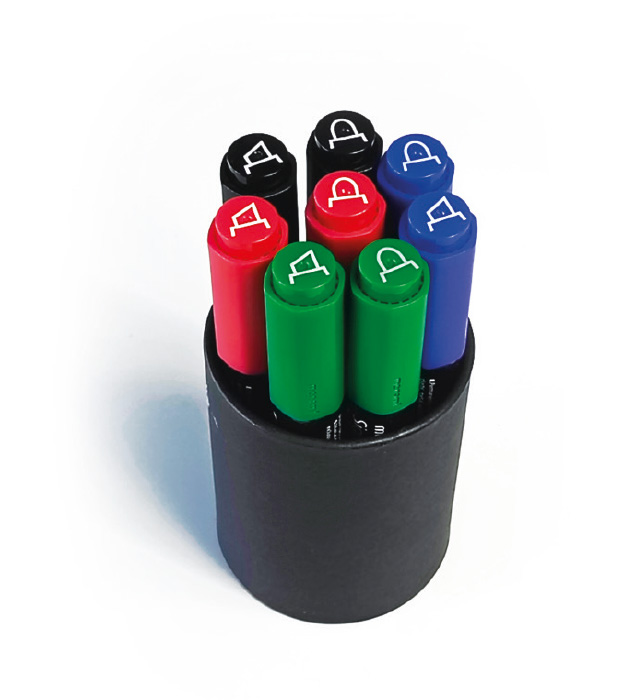 - heksagonalna wentylowana zatyczka z oznaczeniem końcówki nie turla się po biurku